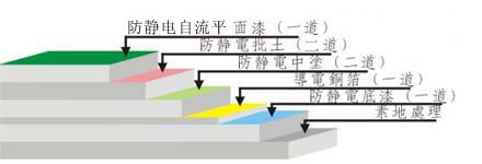 ③防靜電底漆:采用滲透性及附著力特強防靜電環氧底漆滾涂一道,增強表面附著 力;